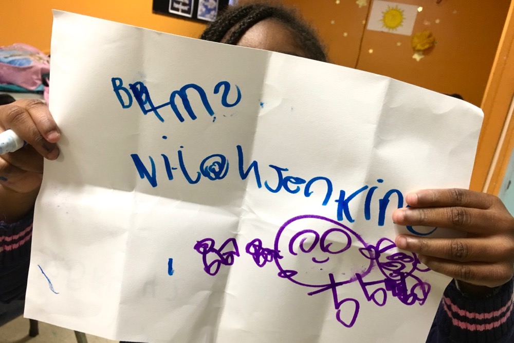 What parent doesn’t love refrigerator art? This youngster was so proud of her creation that she had to display it for her mom—and the world—to see. We make it a point to celebrate the children’s artwork because creativity is an integral part of learning.